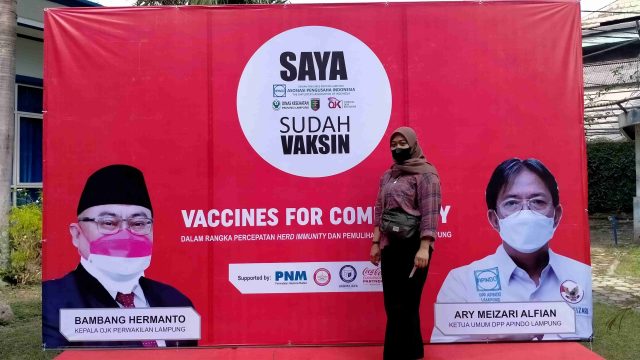 Pelaksanaan vaksinasi didukung Dinas Kesehatan Provinsi Lampung dan Satgas Covid-19 Kota Bandarlampung. Total peserta vaksinasi 980 orang dibagi beberapa sesi. Ketua DPP Apindo Lampung, Ary Meizari Alfian, S.E., M.B.A., menyampaikan terima kasih kepada seluruh stakeholder yang terlibat. “Kerja sama ini bukan hanya vaksin, ke depan juga akan mendorong UMKM agar lebih meningkat lagi,” ungkapnya.