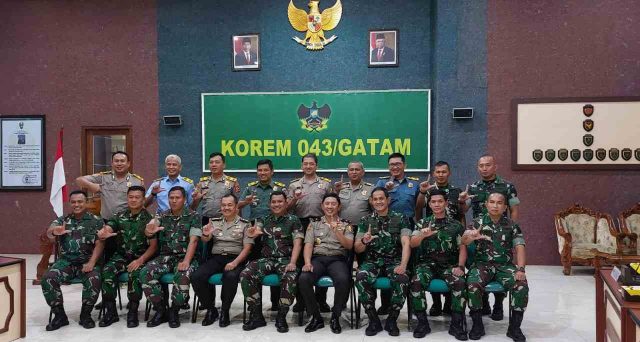 Lintaspost.com, Bandar Lampung – Komandan Korem 043/Garuda Hitam Brigjen TNI Ruslan Effendy, S.I.P, Didampingi Kepala Staf Korem 043/Garuda Hitam Kolonel Inf Prasetyo, menyambut kunjungan Tim Praktek Kerja Dalam Negeri (PKDN) Peserta Didik Sespimti Polri Dikreg Ke 31 Tahun 2022, bertempat di Aula A. Yani Makorem 043./Gatam Jl. Teuku Umar Bandar Lampung. Senin. (25/07/2022).
