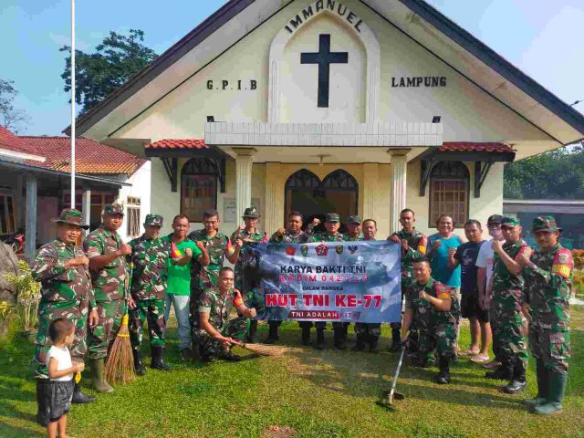 Songsong HUT TNI ke-77 Koramil 421-02/Gedong tataan bersih bersih Gereja
