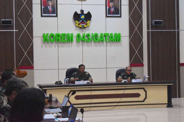 Hadir pada kegiatan Exit Meeting Tim Itjen TNI Kasiren Korem 043/ Gatam Kolonel Arh Tri Ardrijanto, Para Kasi Kasrem 043/Gatam, Dandim 0410/KBL, Dandim 0411/KM, Dandim 0412/LU dan Dandim 0421/LS.