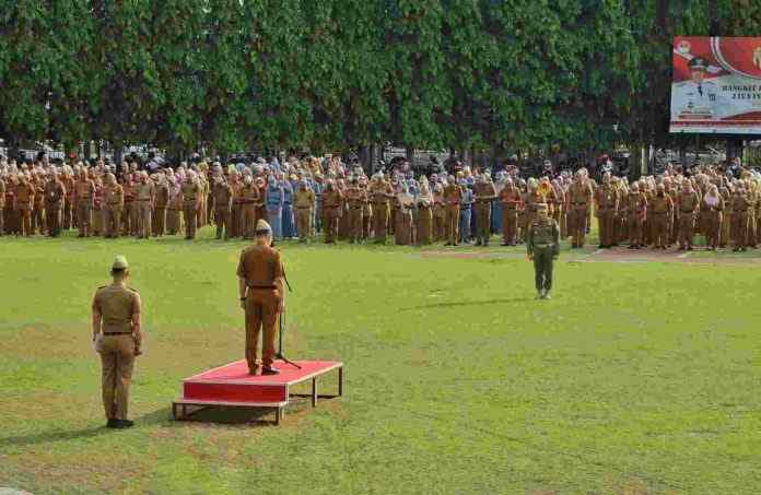 Lintaspost.com, BANDARLAMPUNG – Pimpin Apel Gabungan perdana tahun 2023 di Lingkungan Pemerintah Provinsi Lampung, Sekretaris Daerah Provinsi Lampung Fahrizal Darminto paparkan beberapa capaian pembangunan Pemerintah Provinsi Lampung dihadapan peserta apel, Senin (09/01/2023).