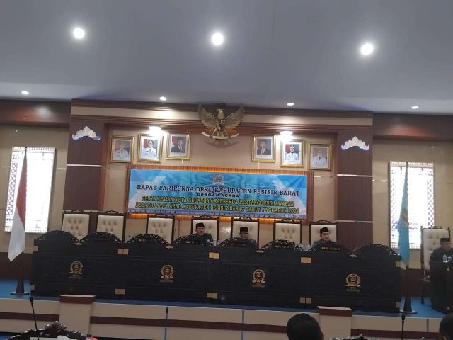 Lintaspost.com, PESISIR BARAT – Bupati Pesisir Barat (Pesibar), Dedi Irawan, menghadiri rapat paripurna Dewan Perwakilan Rakyat Daerah (DPRD) dengan agenda Penyampaian Rancangan Peraturan Daerah (Ranperda) Pesibar tentang Rencana Pembangunan Jangka Menengah Daerah (RPJMD) Tahun 2025-2029, di ruang rapat paripurna DPRD Pesibar, Selasa (8/7/2025).