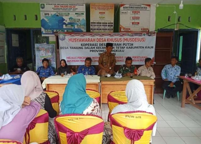 Disampaikan kepala Desa Tanjung Dalam Marzuki pada hari ini desa Tanjung Dalam menggelar Musdessus untuk pembentukan Koperasi Merah Putih. Kegiatan ini mendapat dukungan penuh dari masyarakat dan pemerintah desa Tanjung Dalam, kecamatan Tetap kabupaten kaur, Bengkulu